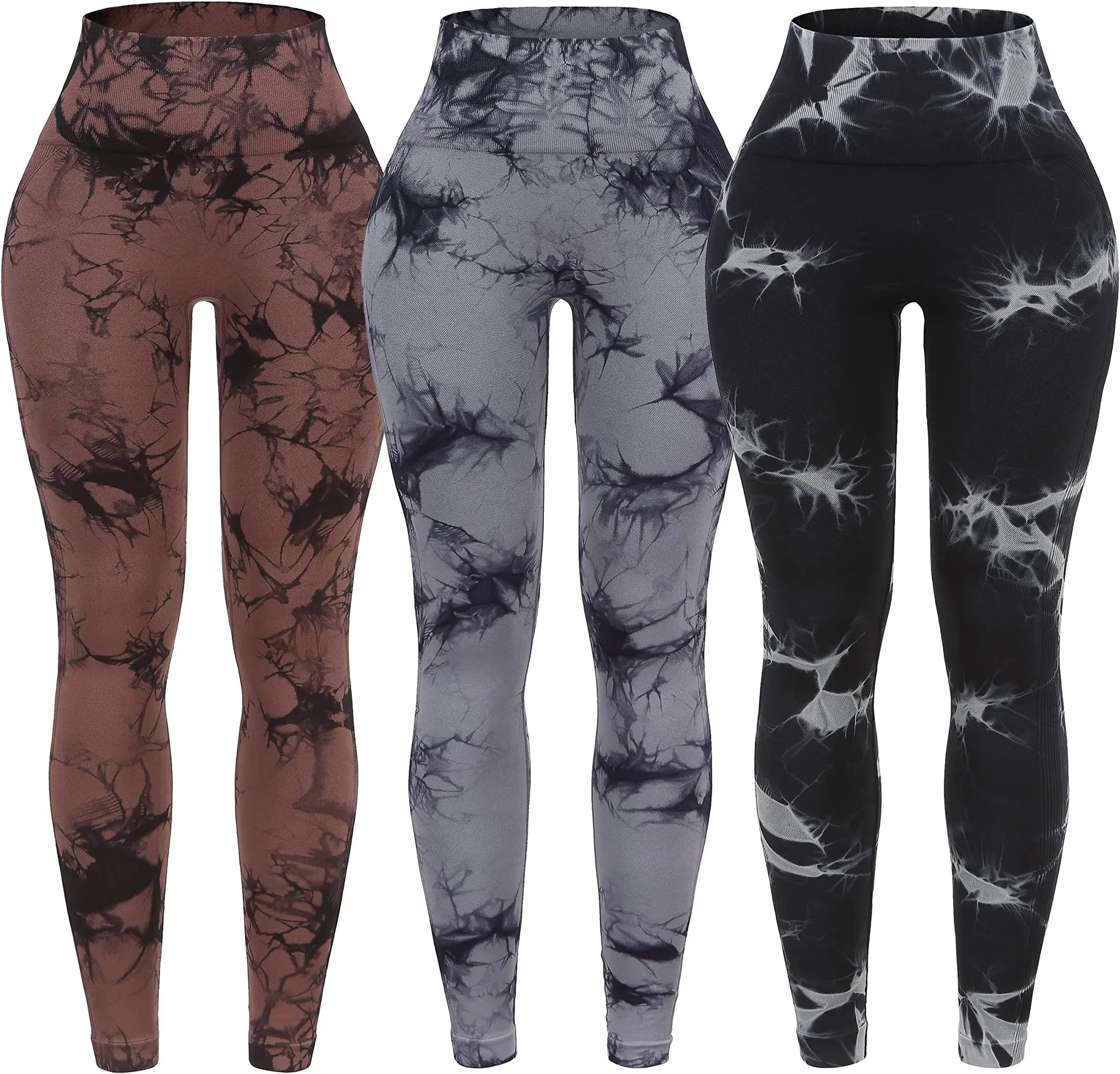 3 Piece Workout Leggings Sets for Women High Waisted Tie Dye