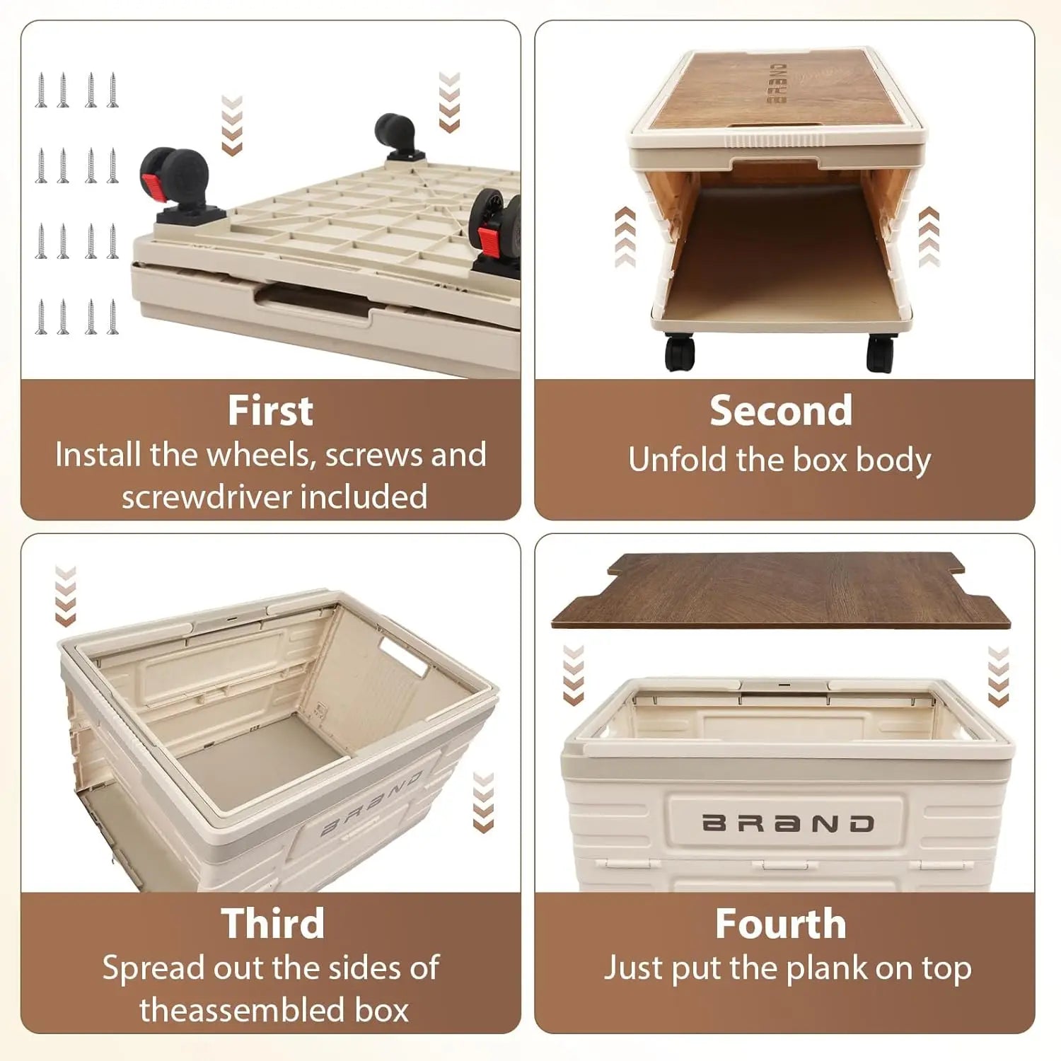 360° Rotating Foldable Storage Cart – Heavy-Duty Mobile Organizer with 4 Silent Wheels, Multi-Functional CampingStorage