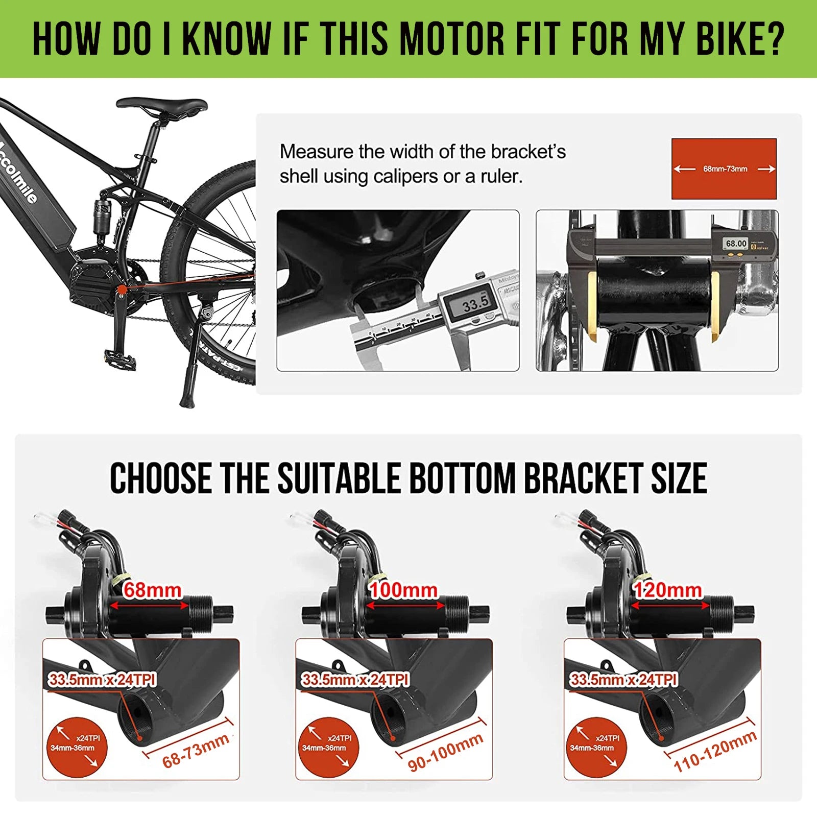 Bafang BBS02B Mid drive kit is compatiable with mountain bike,road bike and so on. This kit is designed to fit a standard 68-73mm (length) and 34-36mm (internal diameter) bottom bracket. If you need the 100MM bottom bracket, please contact us or leave note .