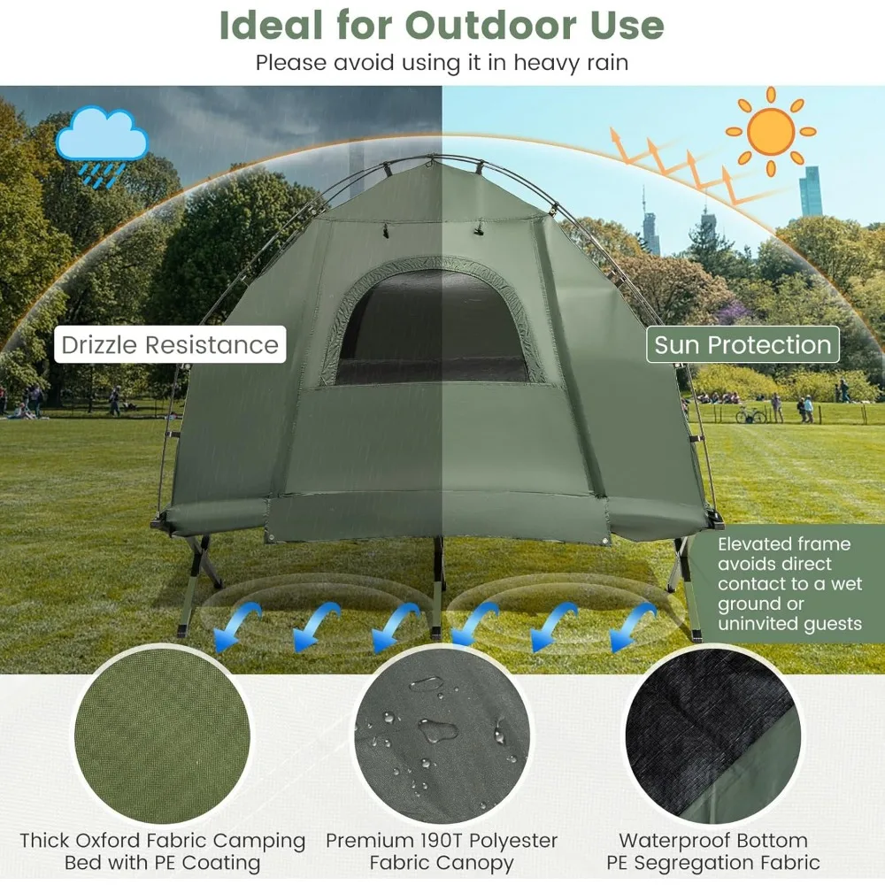 Camping Tent Cot, 5 in 1 Off Ground Elevated Tent with Air Mattress, Sleeping Bag & Pillow, Folding Camping Cot Combo with Carr