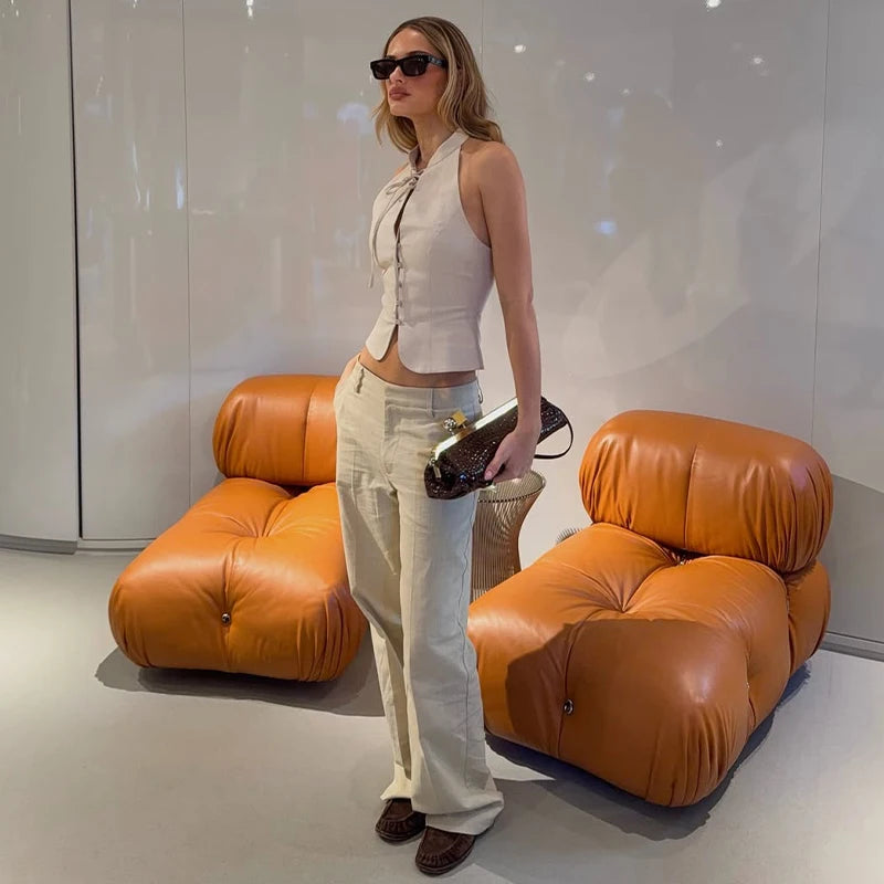 This chic backless tank top features delicate lace-up detailing and buttons, providing a unique touch that sets it apart from typical summer vests. With a regular clothing length and versatile design, it pairs beautifully with jeans, shorts, or skirts, ensuring you look stylish no matter the occasion.