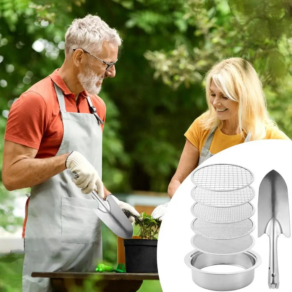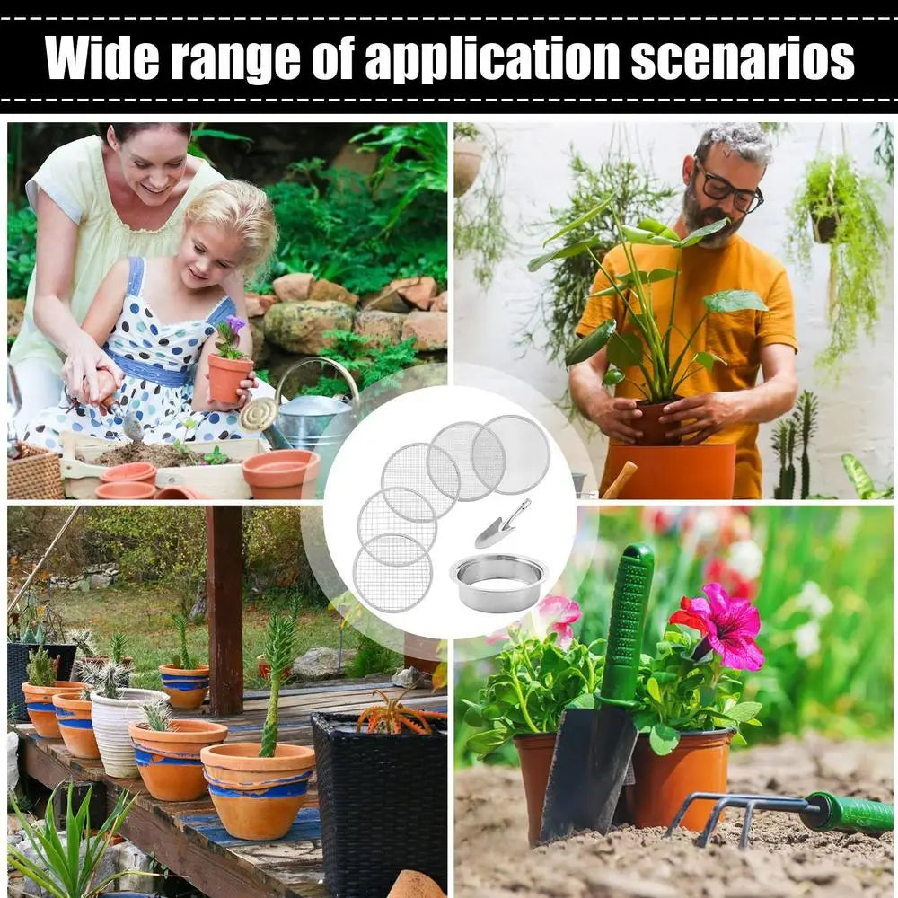 Dirt Sifter Garden Sieve Stainless Steel Pellet Sifter 5 Mesh Screens 1/3/6/9/12mm