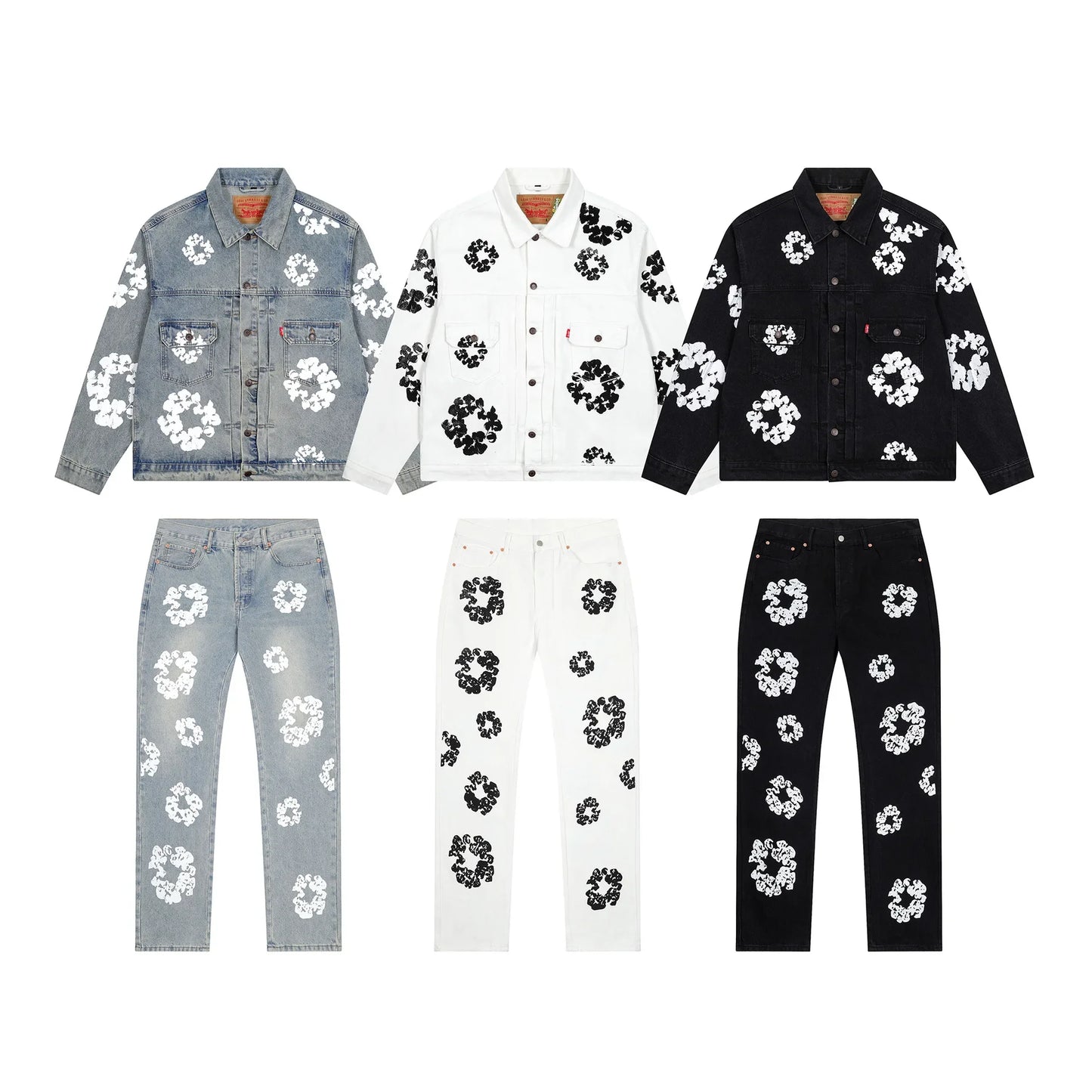 European and American high street cotton print denim jacket trendy brand hiphop explosive street pants loose retro jacket