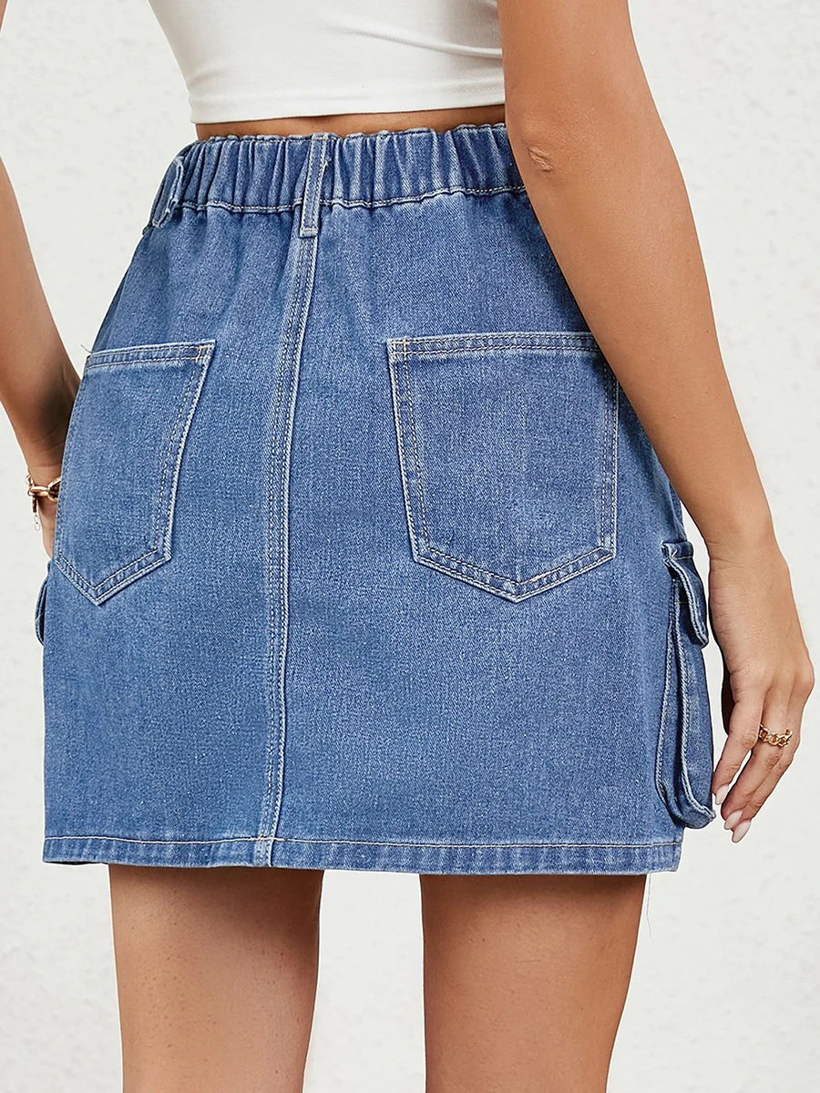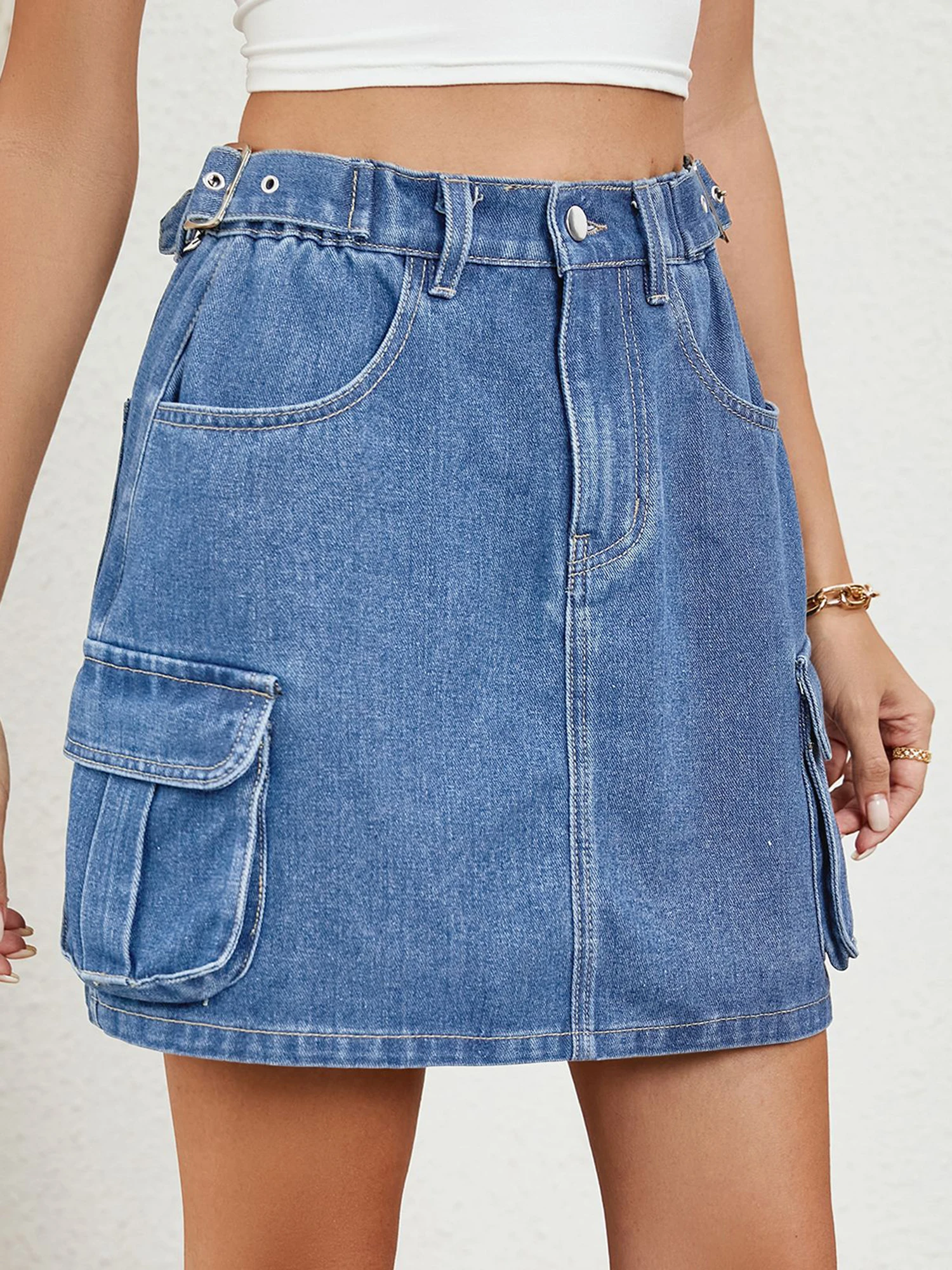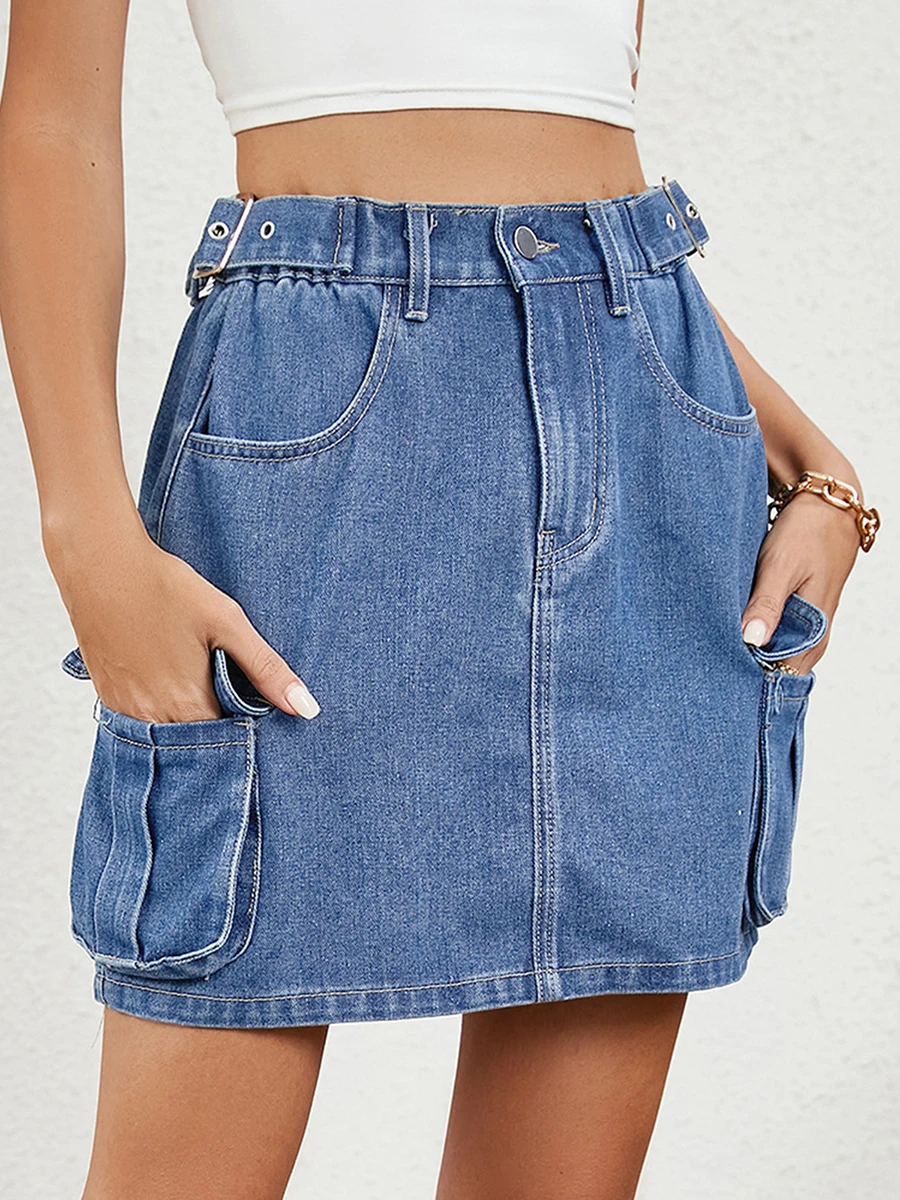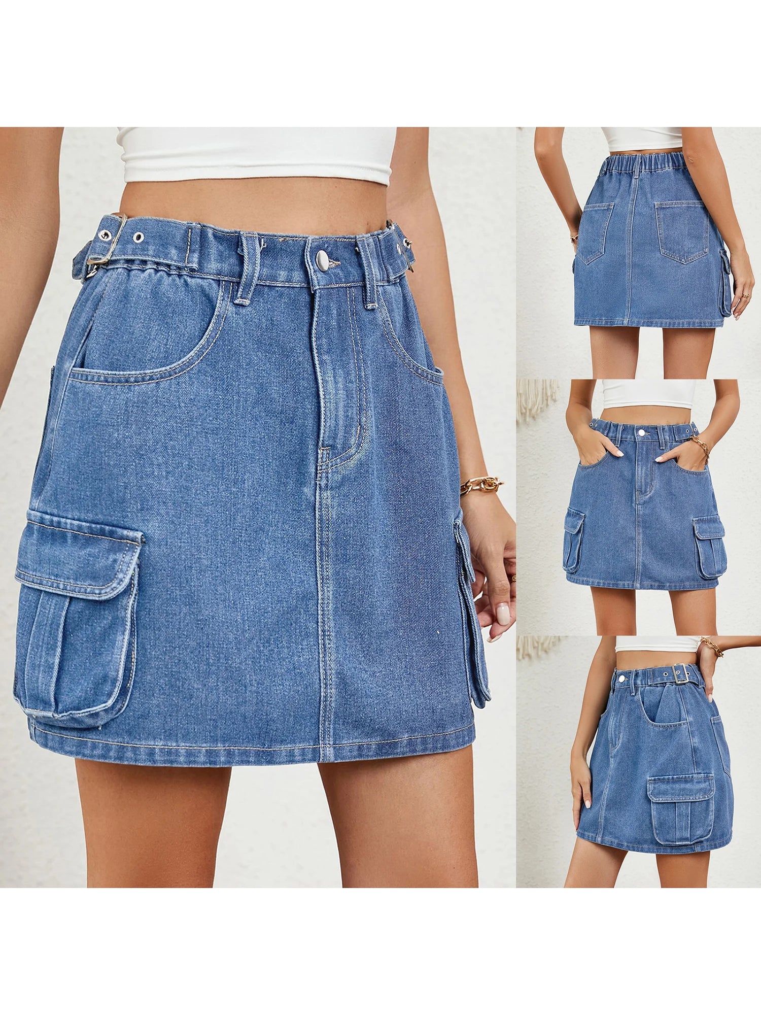 Ladies Denim Skirts in Classic Blue with Stylish Adjustable Waistband and Convenient Pockets - Trendy Summer Fashion Mini Skirt
