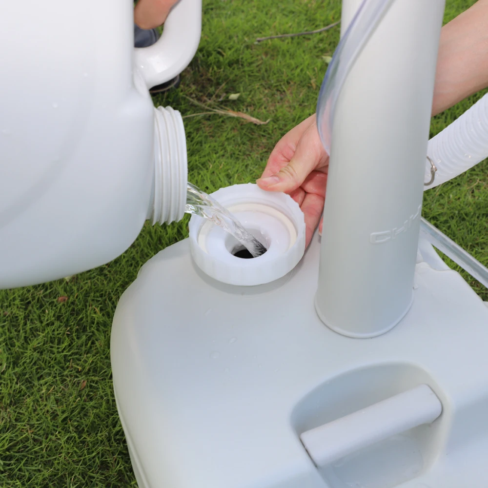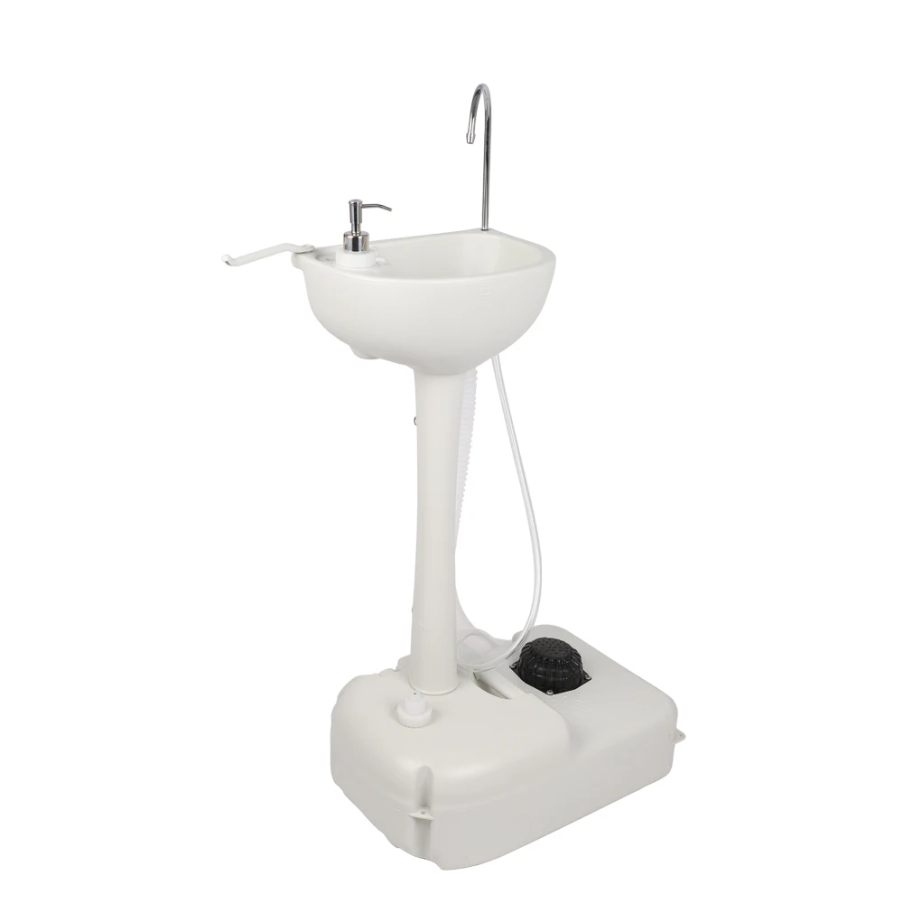 Outdoor Portable Camping Sink with Toilet, Standing Hand Wash Basin with Foot Pump and Water Tank, for RV, Travel, Fishing