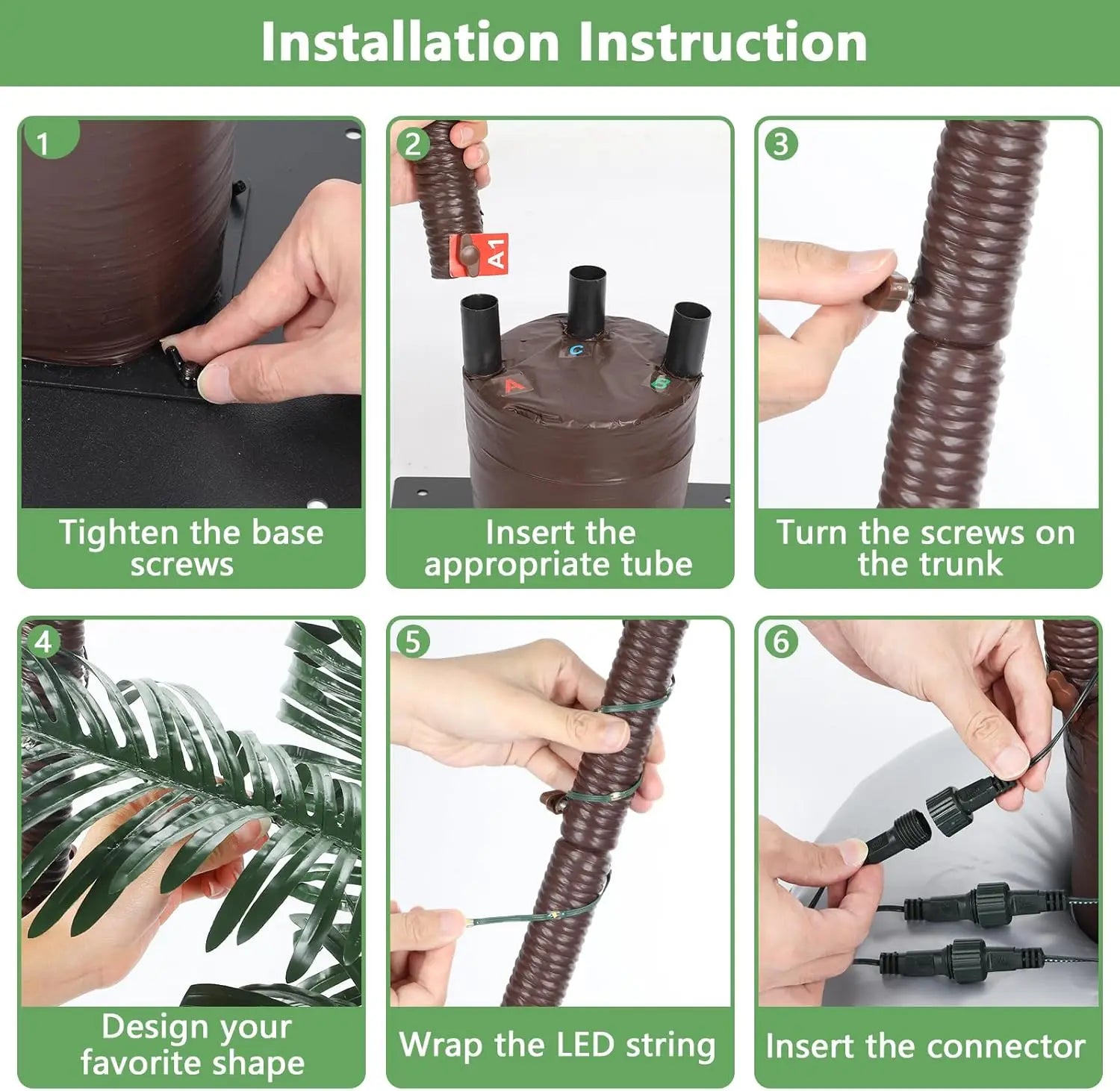 Unique Decoration: Three uniquely shaped trees. The heights of the three trees are 6 feet, 3.3 feet and 2 feet respectively. You can easily adjust the shape of the trees to bring you different tropical styles.
