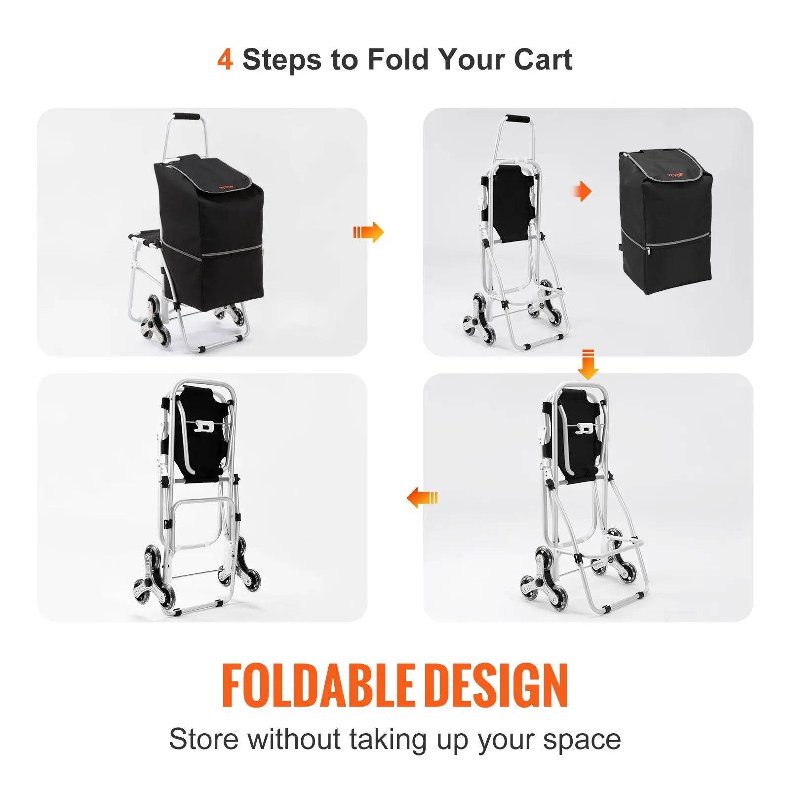 Load Capacity on Ground: 77 lbs / 35 kg,Load Capacity on Stairs: 33 lbs / 15 kg,Tray Static Load Capacity: 165 lbs / 75 kg,Product Dimensions (Unfolded): 20.9 x 17.7 x 38.2 inch / 53 x 45 x 97 cm,Seat Load Capacity: 220 lbs / 100 kg,Product Weight: 6.6 lbs / 3 kg,Wheels Diameter: 3.5 inch / 88 mm,Material: 600D Oxford Cloth + Aluminum Alloy,Product Dimensions (Folded): 3.1 x 17.7 x 31.9 inch / 8 x 45 x 81 cm,Bag Capacity: 50L