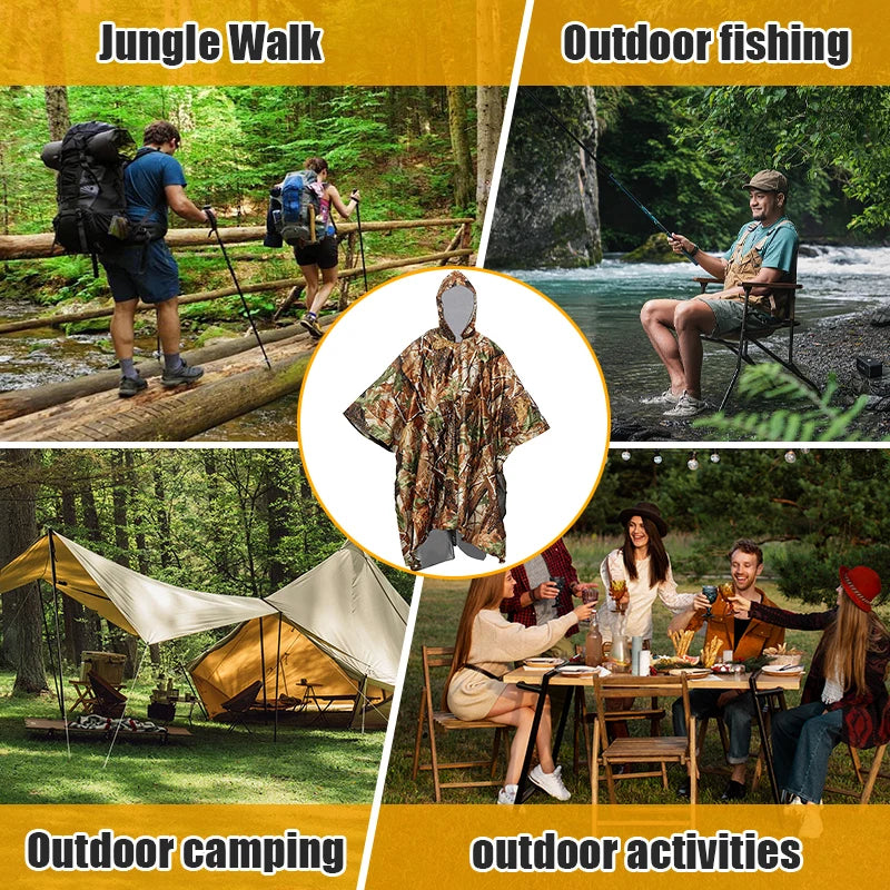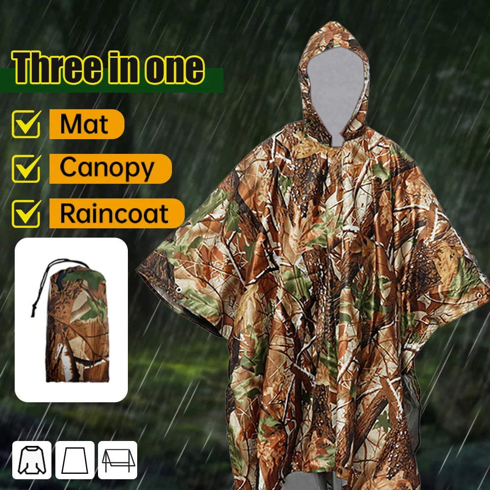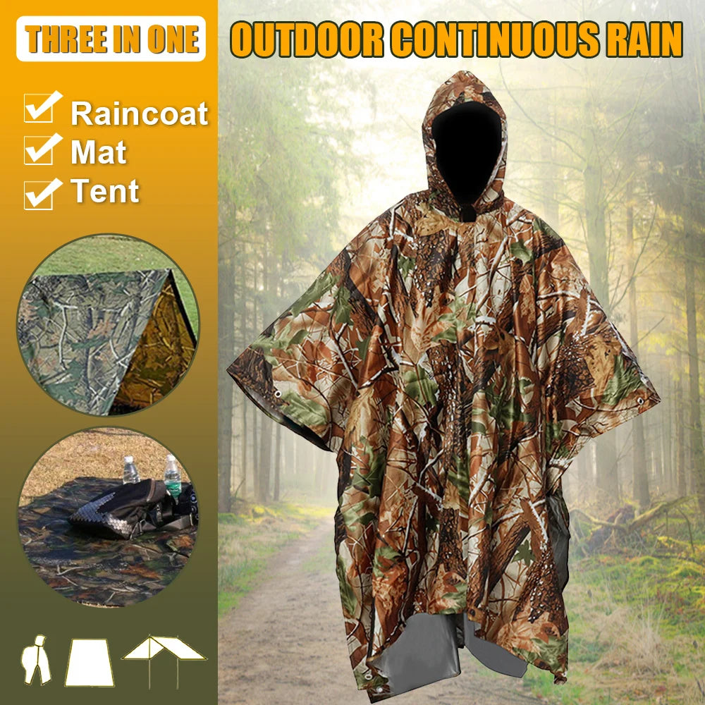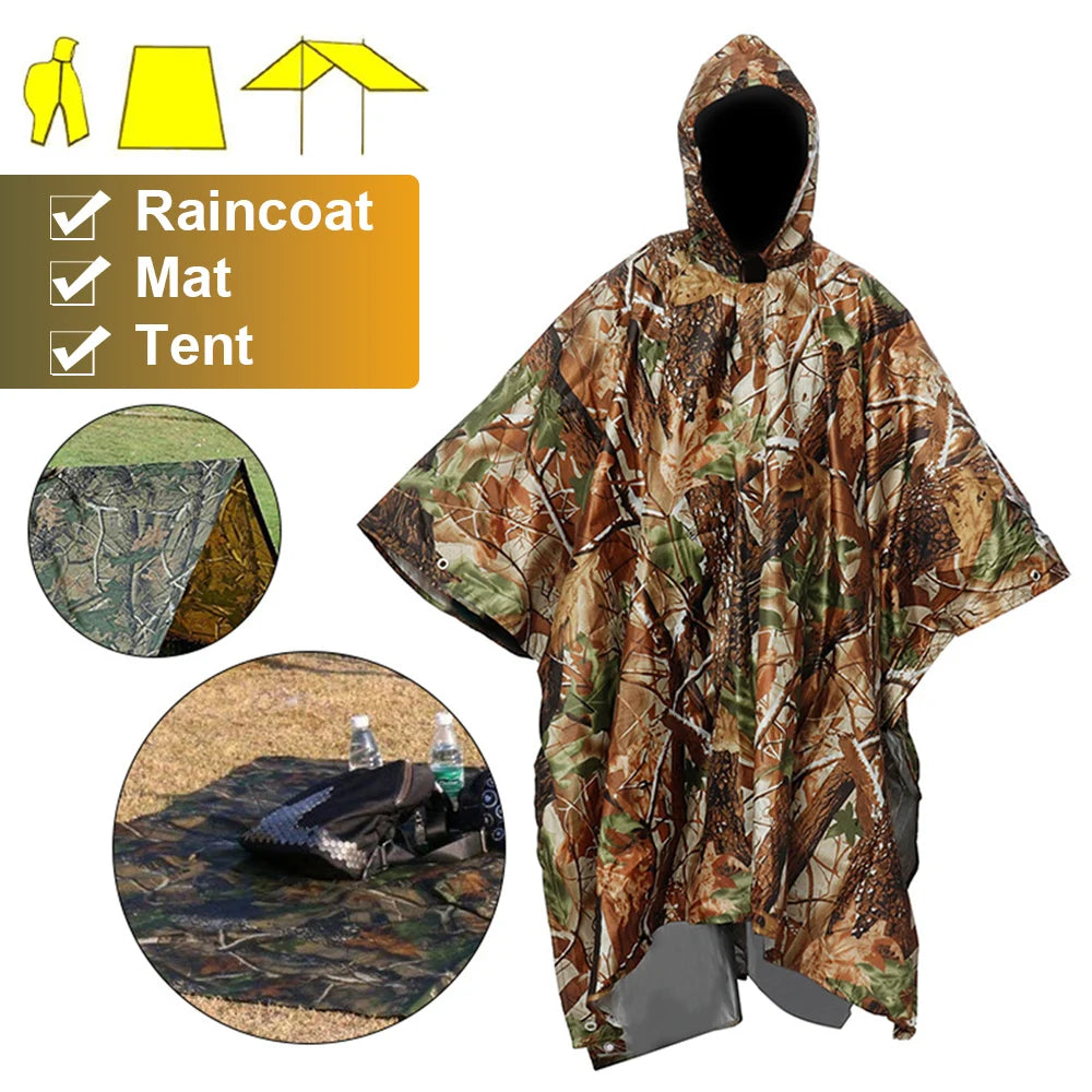 Raincoat 3 in 1 Multifunctional Waterproof Rain Poncho Jacket Hiking Rain Cover Outdoor Awning Tent Mat Camping Clothes Rainwear