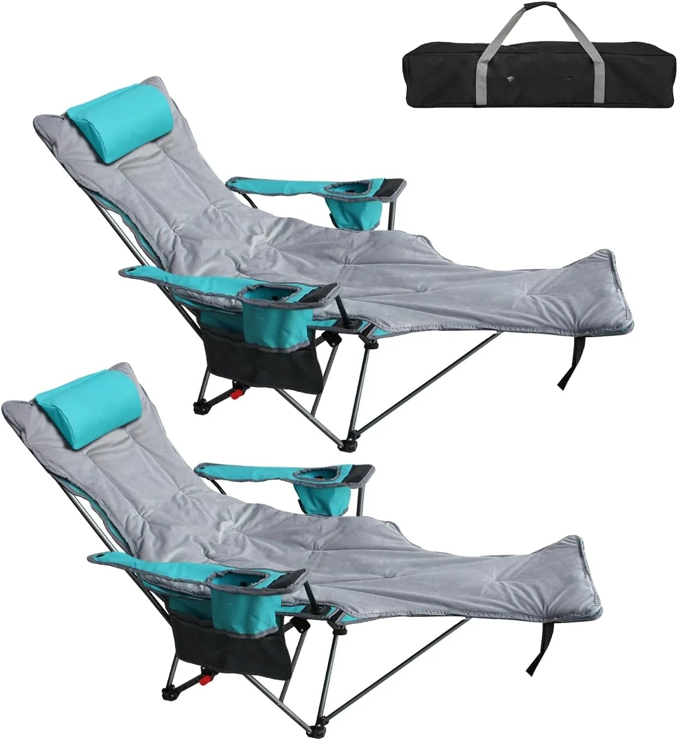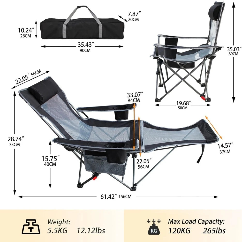 Reclining Camping Chair with Removable Footrest Lounge Chair with Headrest,