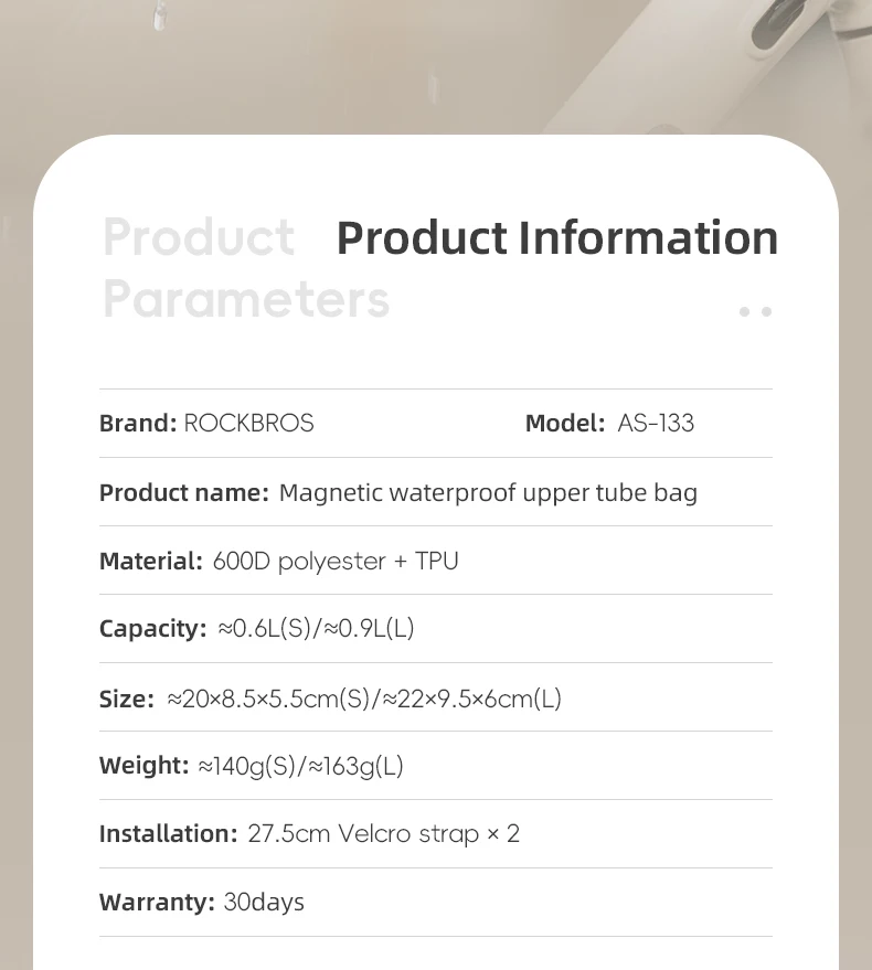 ROCKBROS Magnetic Bicycle Top Tube Bag Suction Cycling Bag Waterproof Portable Front Frame Pack Large Capacity For MTB Road Bike