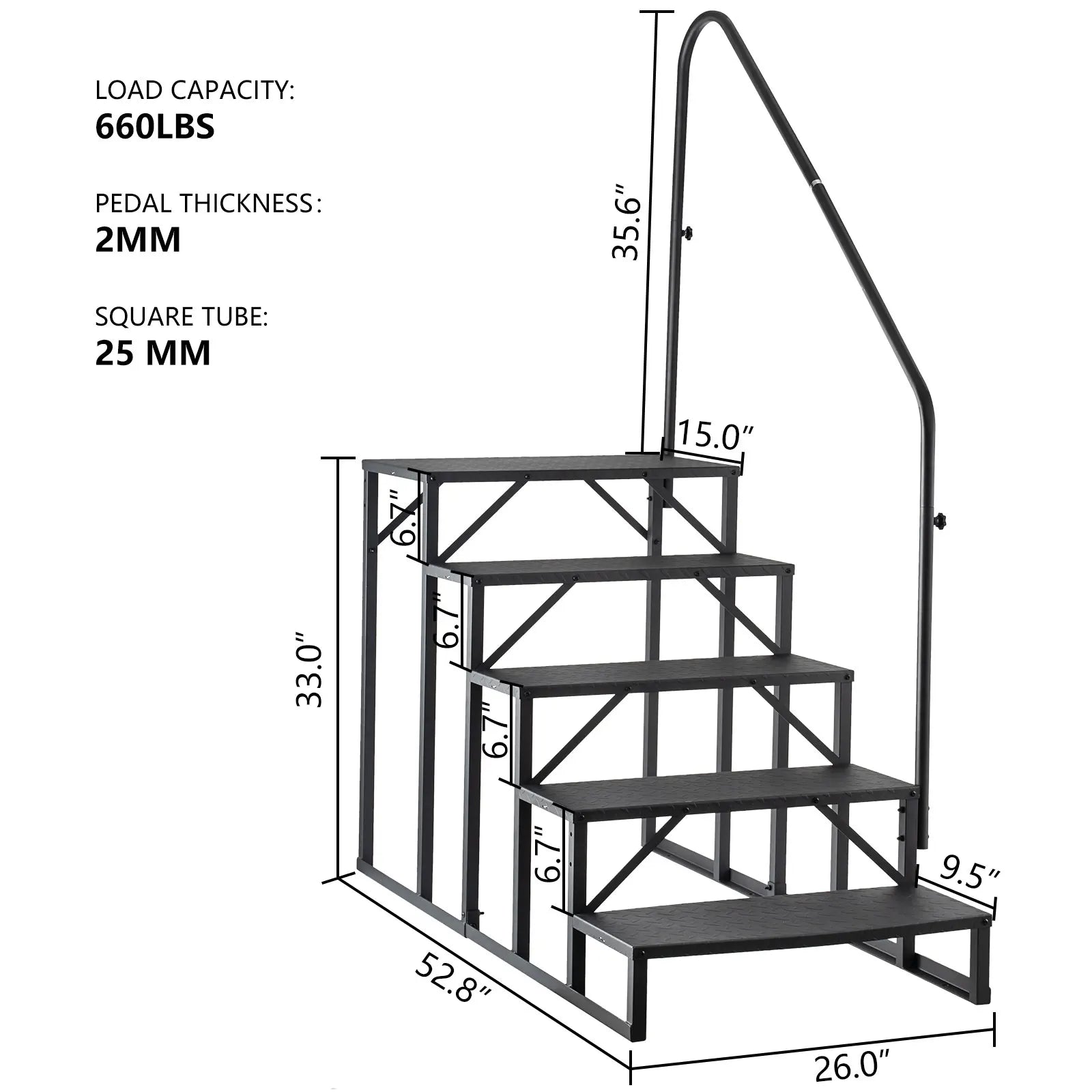 RV Steps with 2 Handrails 5 Step for 5th Wheel RV, Mobile Home Stairs Outdoor RV Step