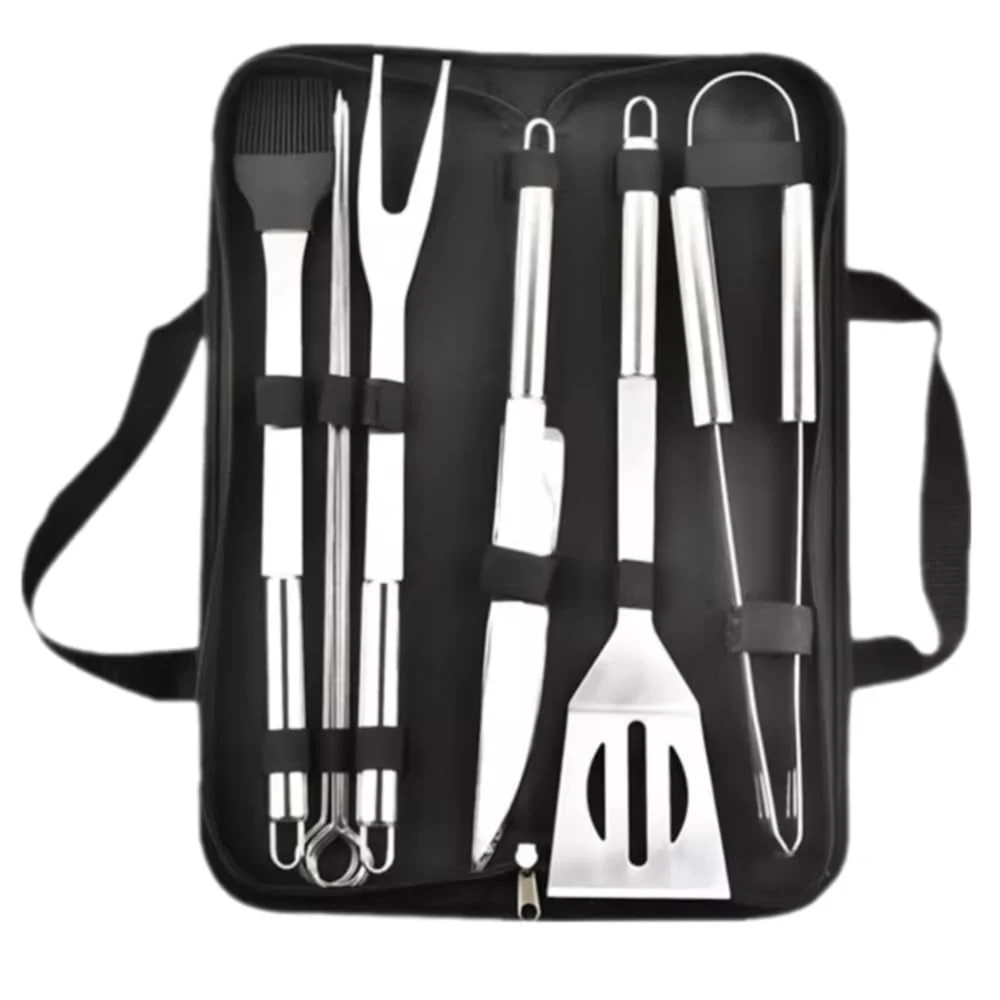Items Included: spatula, fork, knife, brush, tongs, carry bag