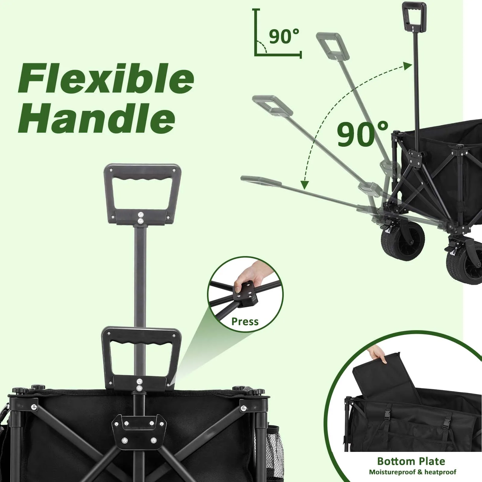 [Detachable&Flexible Handle]: Equipped with detachable cloth bags for easier storage and cleaning. Flexible 60° handle, you can pull the wagon at your comfortble and relaxed angle.