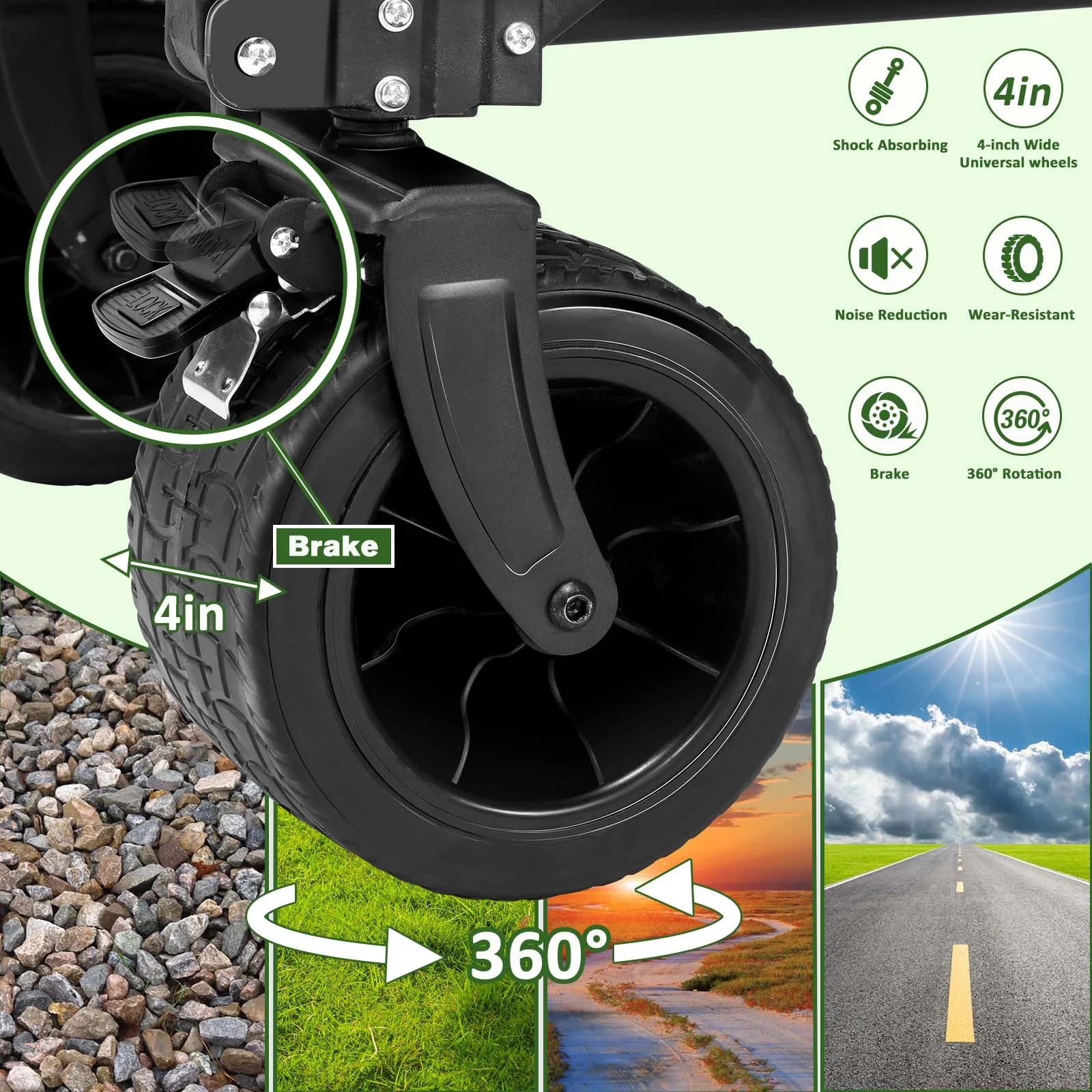 [Sturdy Frame Construction]: Premium steel constructs the super sturdy frame of the folding wagon cart, able to support 265 lbs capacity. You can use it to carry heavy things like camping tents, beach chairs, garden tools and groceries casually.