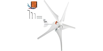 This wind generator comprises a high-quality aluminum body, a stainless steel tail, and a nylon fiber blade. The turbine adopts a three-phase magnet motor, external MPPT controller, and installed hoop to provide you with high power efficiency and effortless installation. In addition, the turbine features low start-up speed, high wind energy utilization, low vibration, and a beautiful appearance, suitable for marine, boat, backyard, and other home charging usage.