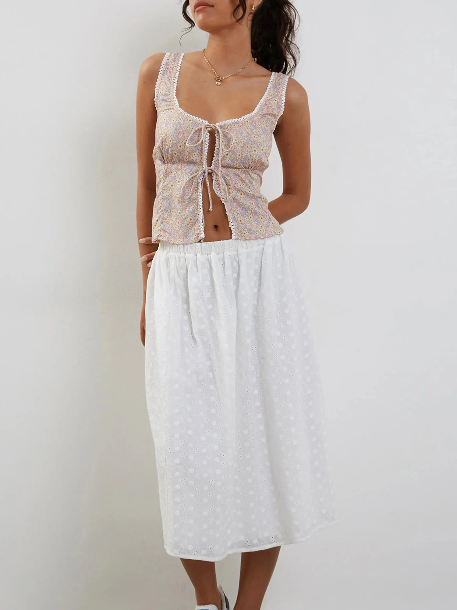 Women's Summer Fashion Cami Tops Sleeveless Open Back U Neck Tie Front Floral Vest TopsSize (cm)