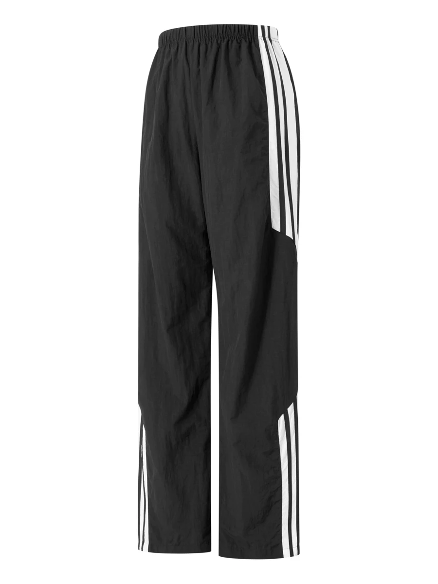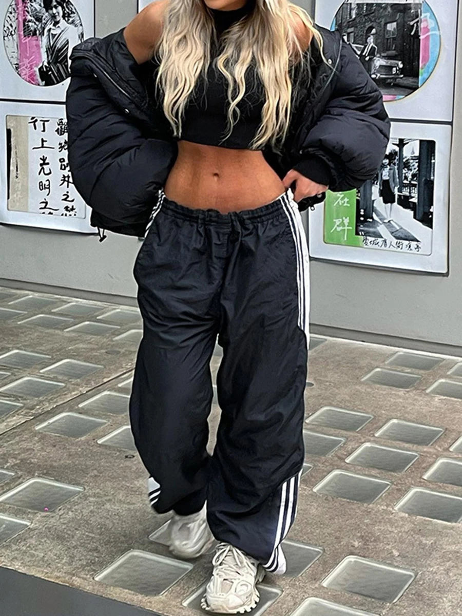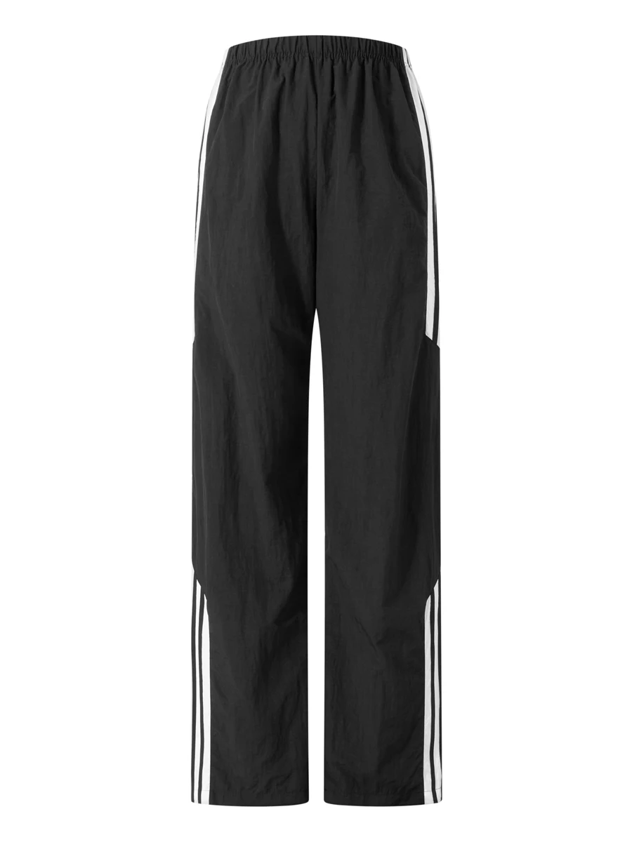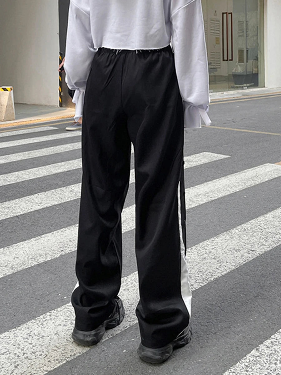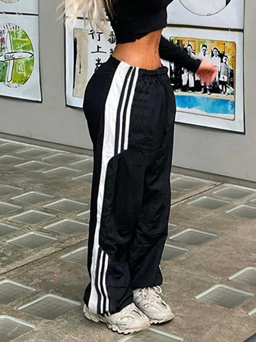 Women's Side Pockets Trousers, Side Horizontal Stripes Elastic Waist Sweatpants, Running Riding Jogging Long PantsSize(cm):